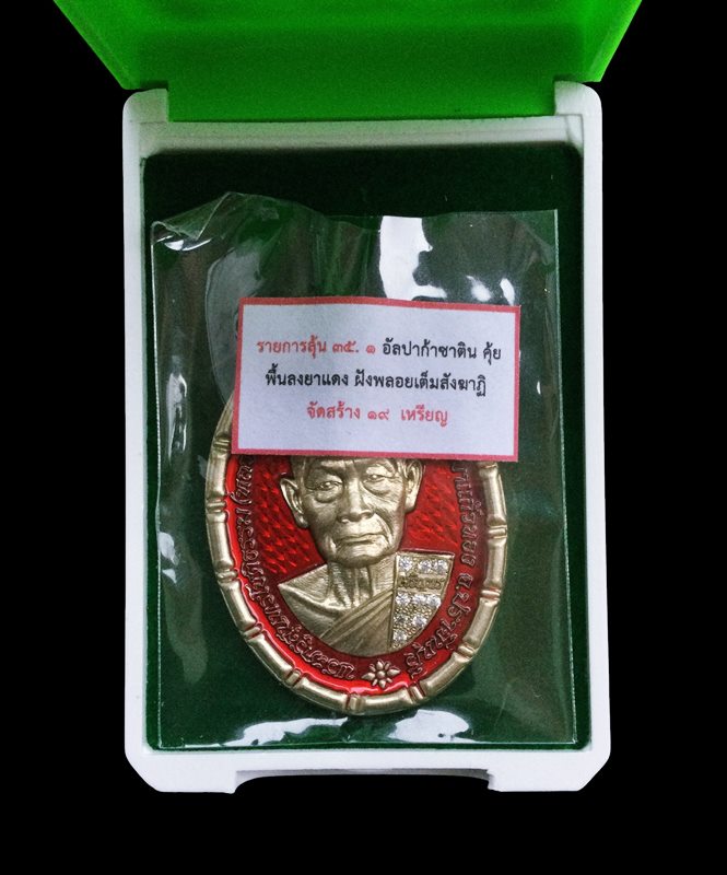 +!!เคาะเดียวllดง ตลอดสาย!!+ เหรียญปล้องอ้อย เจริญพร(กลาง) หลวงปู่บุญมา สำนักสงฆ์เขาแก้วทอง (เนื้ออัลปาก้าลงยาแดง ฝังพลอยเต็มสังฆาฏิ เลขสวย 15) สร้างแค่ 25 เหรียญ พร้อมกล่องเดิมครับ