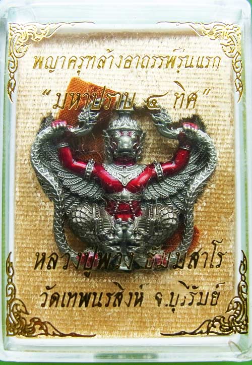 วัดใจ พญาครุฑ ล้างอาถรรพ์ รุ่นแรก " มหาปราบ ๔ ทิศ " หลวงปู่พวง วัดเทพนรสิงห์ จ.บุรีรัมย์ ปี 2565 เนื้ออัลปาก้าซาติน ลงยากายสีแดง ปลุกเสก 3 วาระ พระมหาสุรศักดิ์ , หลวงพ่อทอง , หลวงปู่พวง