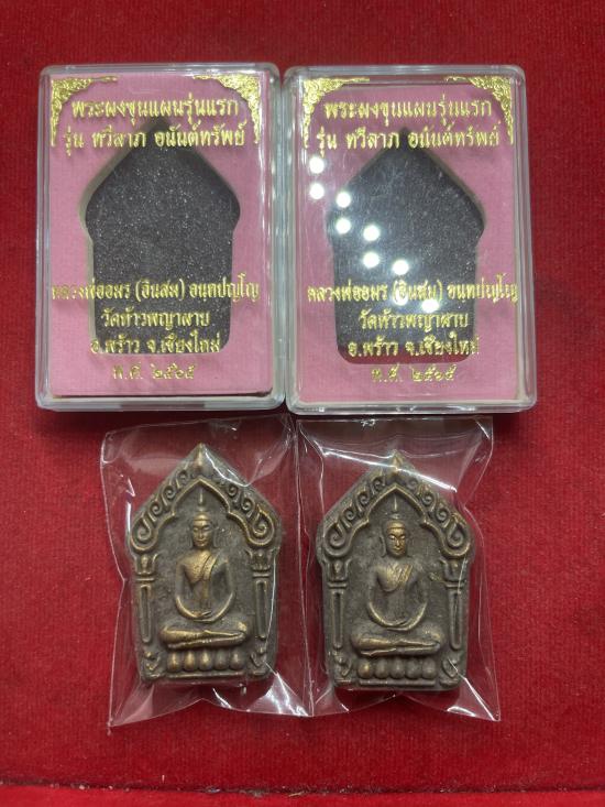 ขุนแผนรุ่นแรก ครูบาอินสม ทวีลาภอนันทรัพย์ เนื้อมหาแร่ ปัดนาค ตะกรุดตะกั่ว3ดอก เลข58,132 กล่องครบจมูกโด่ง แพคคู่