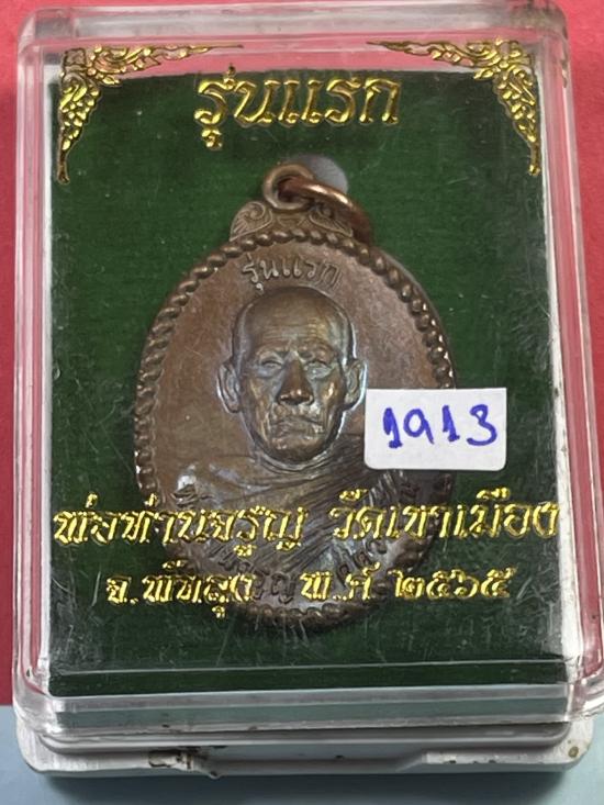 เหรียญ พ่อท่านจรูญ วัดเขาเมือง เนื้อ ทองแดง ห่มเฉียง หลังยันต์ สร้าง2565