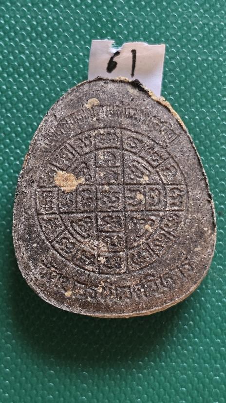 พระปิดตาหลังยันต์ดวง เนื้อ 2 สี หน้าเนื้อเกสรหลังเนื้อใบลาน (มีคล้ายคราบน้ำมนต์)ตะกรุดเงิน(61) |