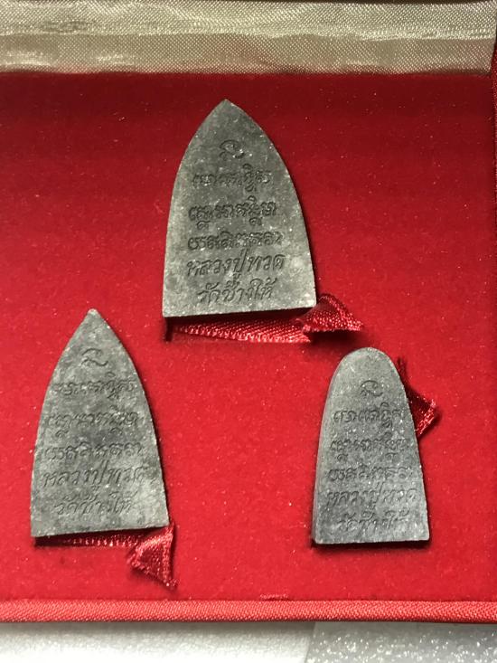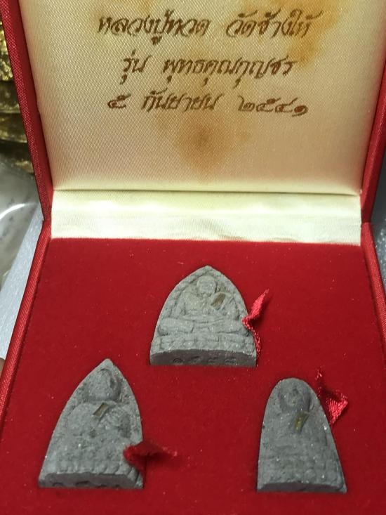 หลวงปู่ทวด วัดช้างให้ รุ่น พุทธคุณกุญชร ชุด 3 องค์ ปี 2541 ตะกรุดเงิน ตอกโค๊ต สภาพสวย กล่องเดิม หายาก พิธีใหญ่ |