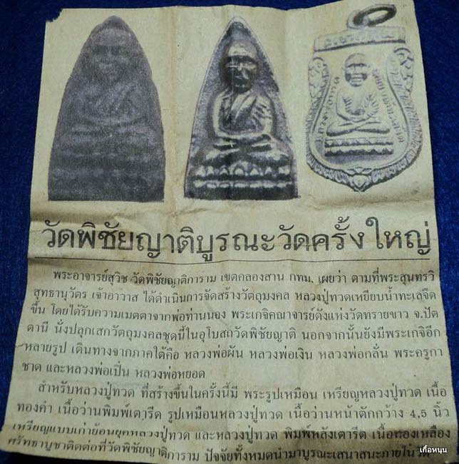 หลวงปู่ทวดเนื้อว่าน วัดพิชัยญาติ ปี 2538 กทม อาจารย์นองวัดทรายขาวปลุกเสก |
