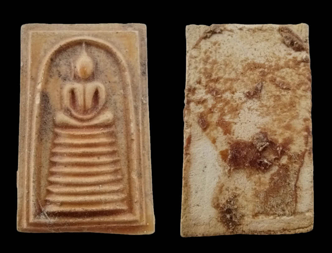 - เอกลักษณ์ของพระรุ่นนี้ จะเคลือบแลคเกอร์ผสมมวลสาร เพื่อป้องกันพระเนื้อผงกะเทาะแตกหัก จึงดูเก่าเหมือนพระบรรจุกรุ