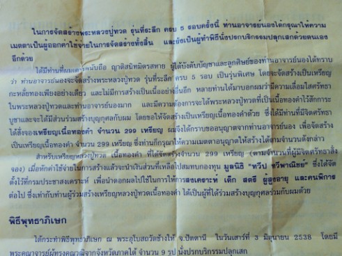 พร้อมใบฝอยประวัติการสร้าง ชัดเจน |