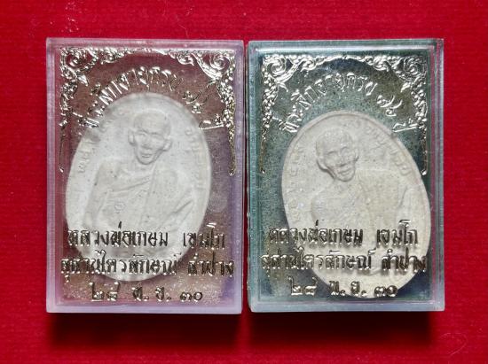 พระเนื้อผงหลวงพ่อเกษม เขมโก จัดมาให้สององค์สวยๆ ฝังตะกรุดหนึ่งองค์นะคะ เหมาบ้านได้มาแบบนี้ค่ะ |