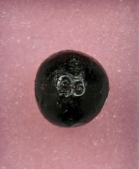 ลูกอมครั่งมนต์พระกาฬ หลวงพ่อวิชัย วัดหัวเด่น (เนื้อครั่งเดียวกับที่ติดหลังเหรียญมนต์พระกาฬ) หมายเลข "36" จารมือหมึกขาว |