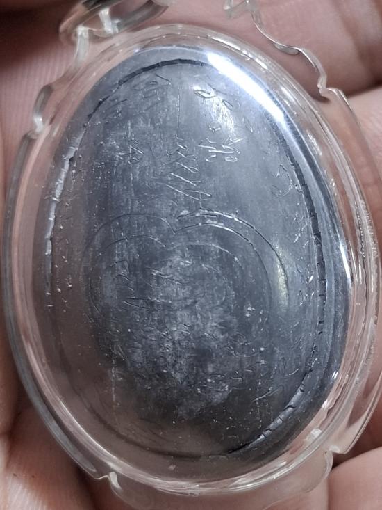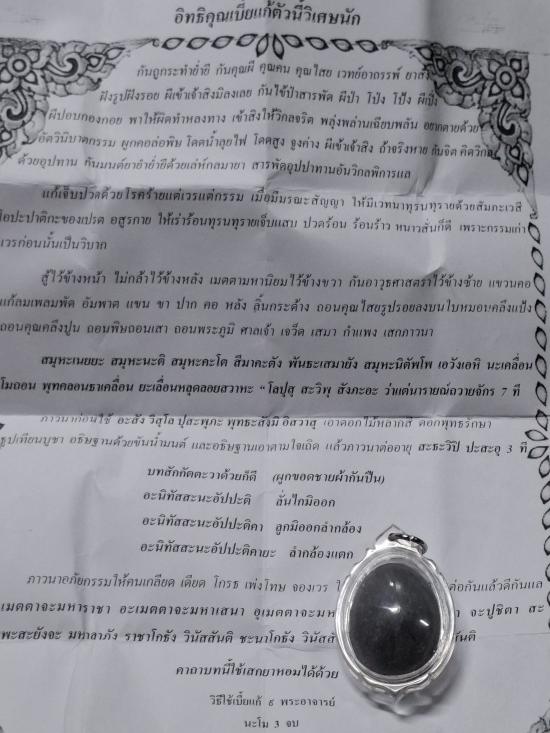 เบี้ยแก้ 9 พระอาจารย์ โดยพระอภิชาติ อภิชาโตภิกขุ วัดเกาะสุวรรณาราม เขตสายไหม กทม หุ้มตะกั่ว จารมือ ใบฝอยเดิม |