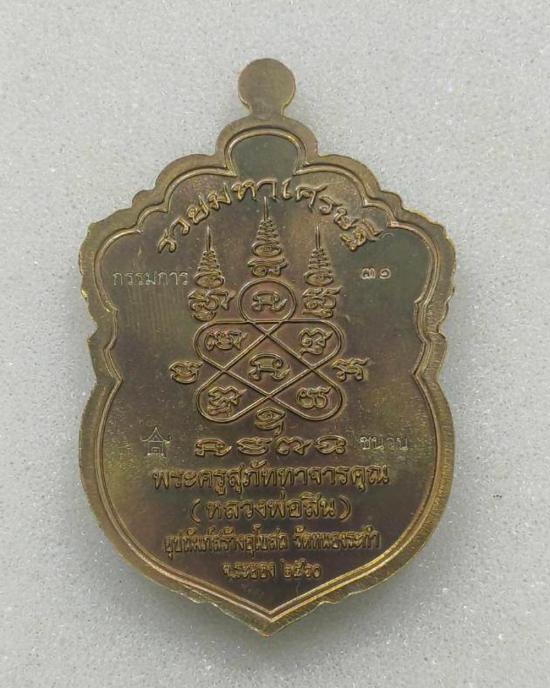 เสมาหัวเสือรุ่นแรก รวยมหาเศรษฐี(กรรมการ)เนื้อชนวน หน้าทองฝาบาตร ลงยา 3 สี หลวงพ่อสิน วัดละหารใหญ่ มีกล่อง แดงเคาะแรก |