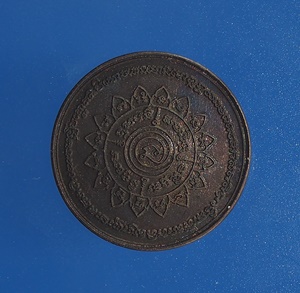๑.นะโม พุท ธา ยะ (พระเจ้า ๕ พระองค์) กึ่งกลางเหรียญ เขียนซ้อนในลักษณะคล้ายๆ ยันต์พุทธซ้อน แต่เป็นคนละยันต์ พุทธใช้ตัว พุทธเขียนซ้อนกัน ๓ ตัว ต้นตำรบเป็นของสังฆราชแพวัดสุทัศน์ฯ