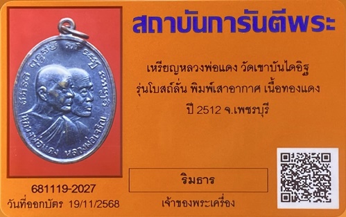 เหรียญหลวงพ่อแดง วัดเขาบรรไดอิฐ รุ่นโบสถ์ลั่น บล็อคเสาอากาศ ปี2512 มีบัตรรับรองจีพระ เคาะเดียว