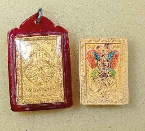 พระผงเทพสาริกาคู่ ครูบากฤษณะ วัดป่ามหาวัน จ.นครราชสีมา 2 องค์ |