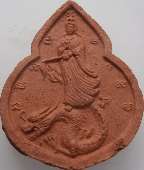 เจ้าแม่กวนอิมประทับมังกร ปางประทานพร เนื้อดิน วัดป่าช่องกุ่ม หลวงปู่หมุน ปลุกเสก พิธีไตรมาสรวยทันใจ ปี 2543 |