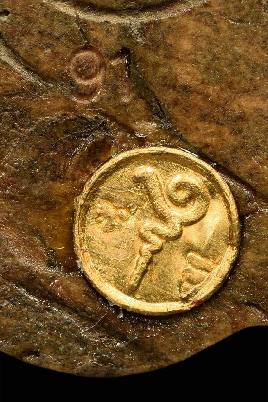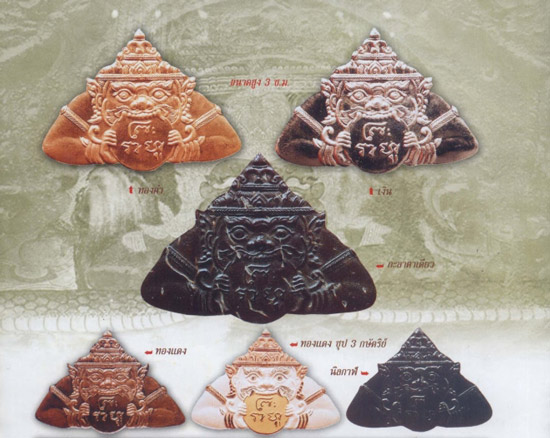 ราหู เนื้อกะลาตาเดียว หลังแผ่นทองคำแท้99.99เปอร์เซ๊น รุ่นเฉลิมพระเกียรติ วัดพระมหาธาตุวรมหาวิหร ปี48 หมายเลข 91 สวยมาก