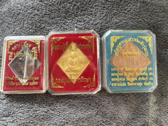 @@@ 3 องค์ @@@ หลวงปู่เอี่ยม 2 องค์ เหรียญพระนเรศวร 1 องค์ วัดสะพานสูง นนทบุรี พร้อมกล่องเดิมครับ |