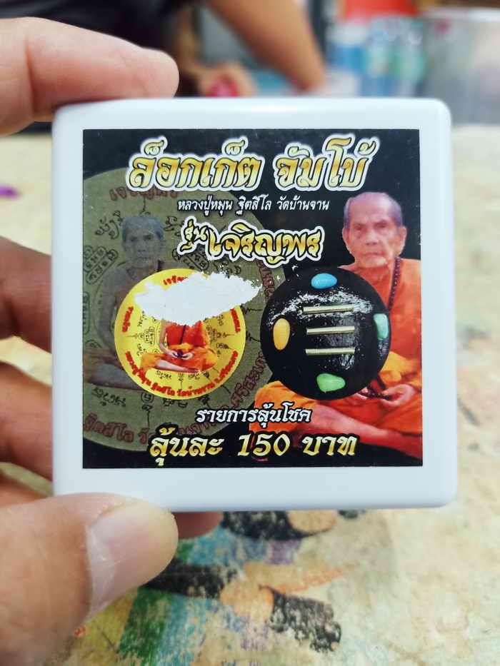 วัดใจ 100 ล็อกเก็ตจัมโบ้ เจริญพร หลวงปู่หมุน วัดบ้านจาน ฉากแดง หลังปิดมวลสาร ตะกรุด หมายเลข 117 กล่องเดิม |