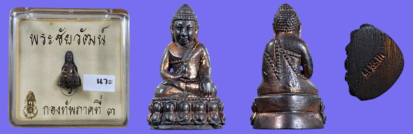 พระชัยวัฒน์นเรศวรเพ็ชรกลับ เนื้อนวะโลหะ สร้างน้อย ใต้ฐานตอกโค๊ต สภาพสวยเดิม ๆ พิธีพุทธาภิเษกยิ่งใหญ่ น่าใช้น่าสะสมมาก พร้อมกล่องเดิมครับ ... |