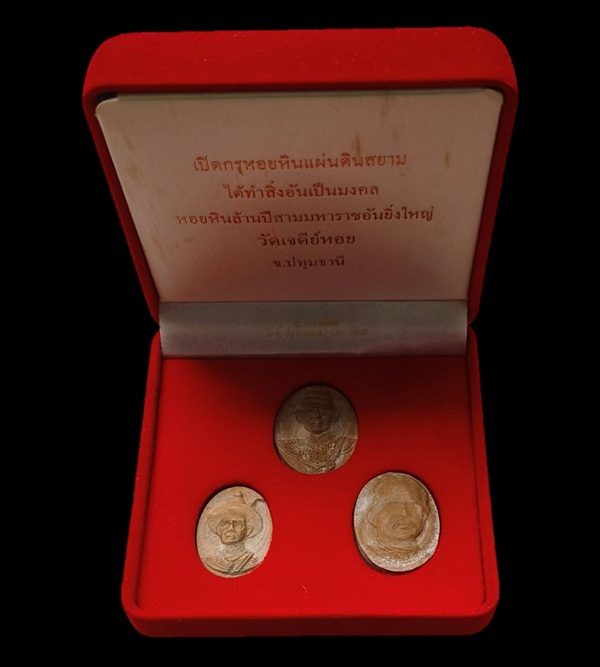 อภิมหามงคล ชุด 3 มหาราช วัดเจดีย์หอย ต.บ่อเงิน อ.ลาดหลุมแก้ว จ.ปทุมธานี สุดยอดแห่งวัตถุมงคลที่ควรค่าแก่การบูชาสะสม สร้างจากหอยหินอายุนับล้านๆปี พิธีพุทธาภิเศกวันที่ 28 ธันวาคม ปี 2542 โดย ยอดพระคณาจารย์ที่เรืองพระเวทย์วิทยาคมที่สุดแห่งยุค 9 รูป ดังมีรายนามต่อไปนี้