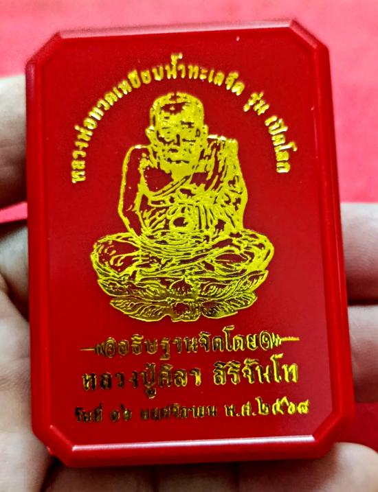 รายละเอียด หลวงปู่ทวด รุ่นเปิดโลก พิมพ์เสมา หลวงปู่ศิลาอธิษฐานจิต วัดพระธาตุหมื่นหิน เนื้อทองระฆัง ลงยาจีวร พื้นแดง NO.๖๒