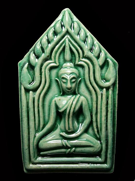 เคลือบสีเขียวนิยม สภาพสวยเดิมเก่าเก็บ หลังตราวัดมีจารครบสูตร มีกล่องเดิมๆครับ