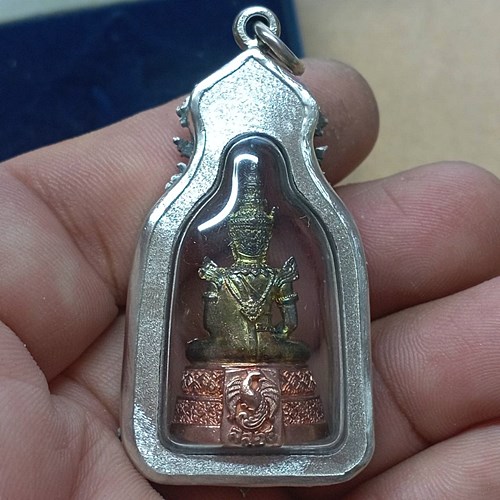 พระแก้วมรกต กรมสรรพสามิตจัดสร้าง วัดพระศรีรัตนศาสดารามเนื้อเงินสามกษัตริย์ โค๊ด 3 ปี 2539 พร้อมเลี่ยมกรอบเงินแท้ 92.5% ขึ้น งานมือ กรอบหนา รมดำ สวยๆ...พร้อมกล่อง |