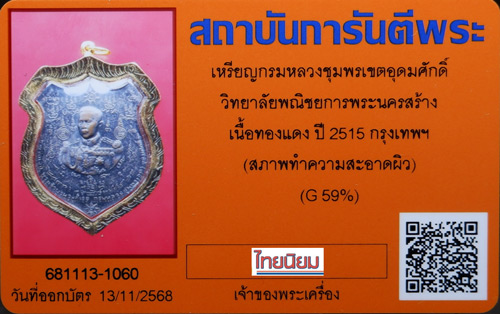 เหรียญกรมหลวงชุมพรเขตอุดมศักดิ์ วิทยาลัยพณิชยการพระนครสร้าง ปี 2515 + บัตรรับรอง G-Pra |
