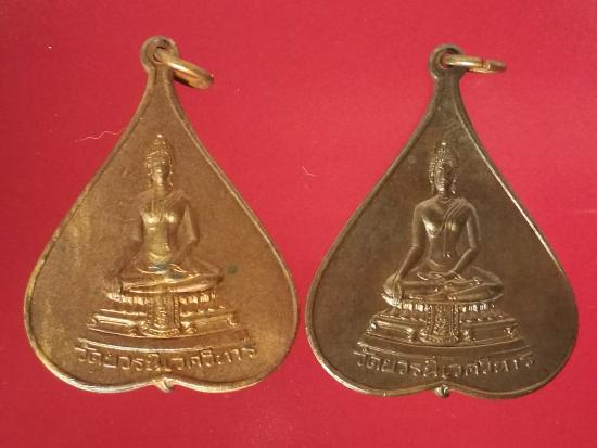 เหรียญใบโพธิ์ พระพุทธชินสีห์ หลังตราประจำพระองค์สมเด็จย่า วัดบวรนิเวศวิหาร กรุงเทพฯ ปลุกเสกพิธีใหญ่ ปี ๒๕๑๗ 2 เหรียญ |