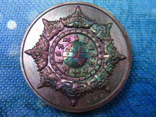เหรียญปิดตาพังพะกาฬ รุ่นเหนือดวง รุ่นแรก พระอาจารย์ประสูติ วัดในเตา จ. ตรัง เนื้อ ทองแดงผิวรุ้ง ลงยาน้ำเงิน (---A32---) |