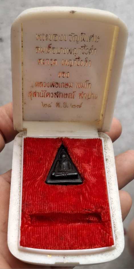 พระของขวัญพิเศษ พระสมเด็จนางพญางิ้วดำ ตะกรุดพญางิ้วดำหายนะครับ หลวงพ่อเกษม เขมโก รุ่นเสตุวารี ปี ๒๕๒๗ แจกกรรมการเท่านั้น เก่าเดิมหายาก มาพร้อมกล่องเดิมๆ จากพิธี ตามรูปครับ |