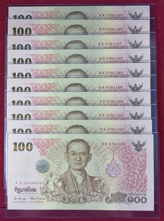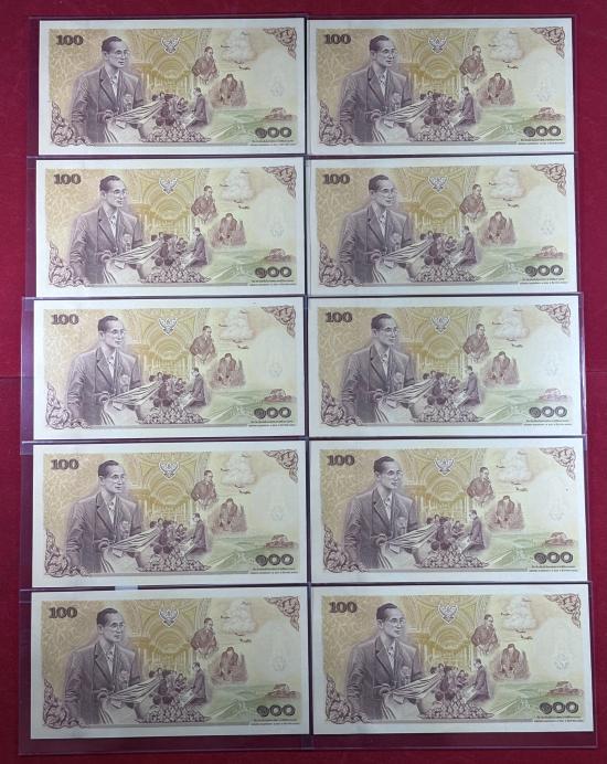 ธนบัตร 100 บาท รัชกาลที่9 ที่ระลึก84พรรษารัชกาลที่9 จำนวน 10 ใบ สภาพใหม่สวยตามรูป