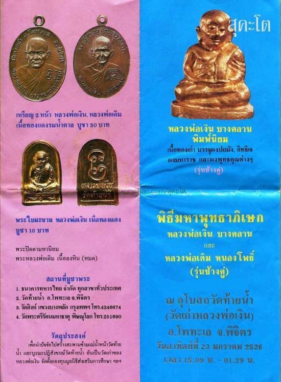เหรียญปรกใบมะขามหลวงพ่อเงิน วัดท้ายน้ำ รุ่นช้างคู่ ปี26รายนามพระคณาจารย์ ลงอักขระแผ่นเงิน แผ่นทอง ปลุกเสก พิธีพุทธาภิเษก เกจิคณาจารย์ร่วมปลุกเสก |