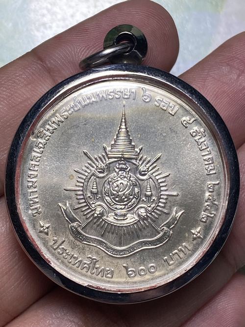 เหรียญ 600 บาท ในหลวง ร.9 พิธีมหามงคลเฉลิมพระชนมพรรษา 6 รอบ (เนื้อเงิน) พร้อมตลับพุก |