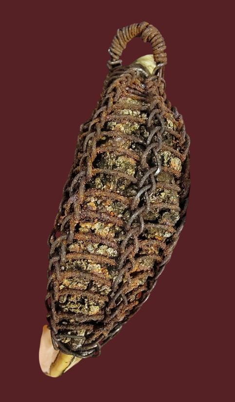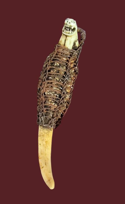 เขี้ยวหมูป่าตันแกะรูปเสือ พอกผงถักลวดเก่า |