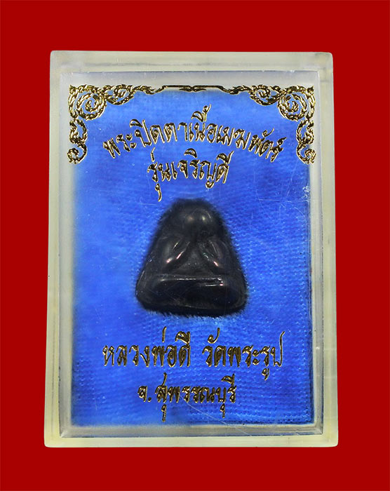พระปิดตาหลังตัน รุ่นเจริญดี เนื้อเมฆพัตร หลวงพ่อดี วัดพระรูป ปี 2534 จ.สุพรรณบุรี กล่องเดิม |