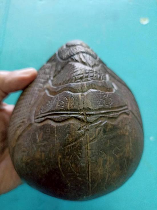 กะลาตาเดียว แกะสลักรูปนางกวัก ลงอักขระตามสายวิชา แก้ดวงตกด้านการเงิน แก้เคล็ดเสริมโชคลาภ ของเก่าเก็บมานาน |