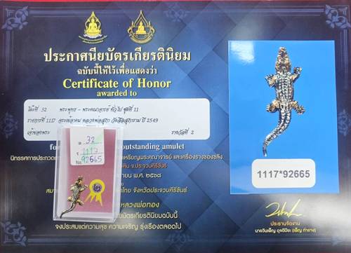 จระเข้อาคม หลวงปู่สุภา วัดสีลสุภาราม เนื้อสามกษัตริย์อุดผง ปี2549 ติดรางวัลที่2 |