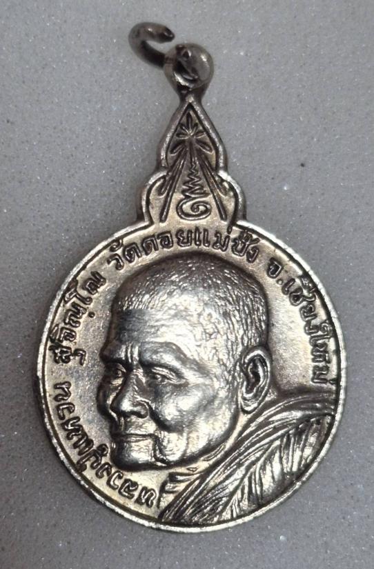 เหรียญสร้างเจดีย์พิมพ์ใหญ่เนื้อทองแดงกะไหล่เงิน รุ่น เมตตา หลวงปู่แหวน สุจิณโณ วัดดอยแม่ปั๋ง อ.พร้าว จ.เชียงใหม่ ปี พ.ศ.2520 |