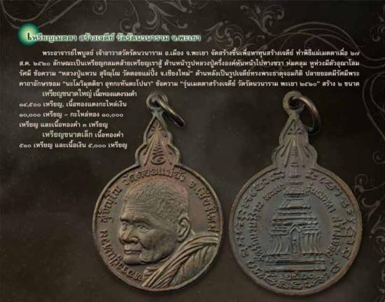 - เหรียญสร้างเจดีย์พิมพ์เล็กเนื้อเงิน มีจำนวนการจัดสร้าง 5,000 เหรียญ
