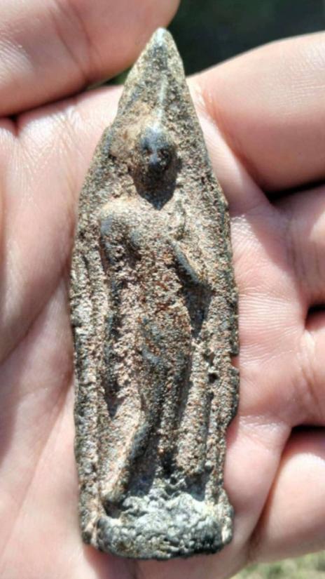 พระลีลา กรุวัดถ่ำหีบสุโขทัย ประกันพระแท้ประกันแท้ เนื้อชินเขียว |