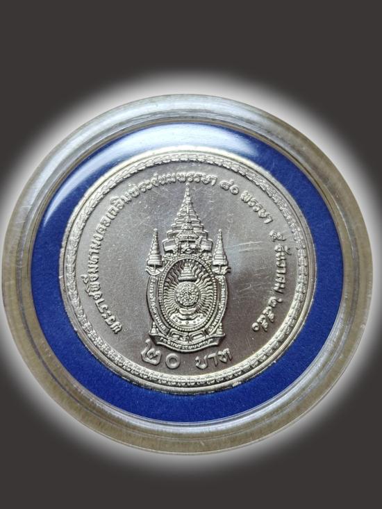 A4258.เหรียญ 20 บาท รัชกาลที่ 9 เฉลิมพระชนมพรรษา 80 พรรษา เคาะเดียวเเดง |