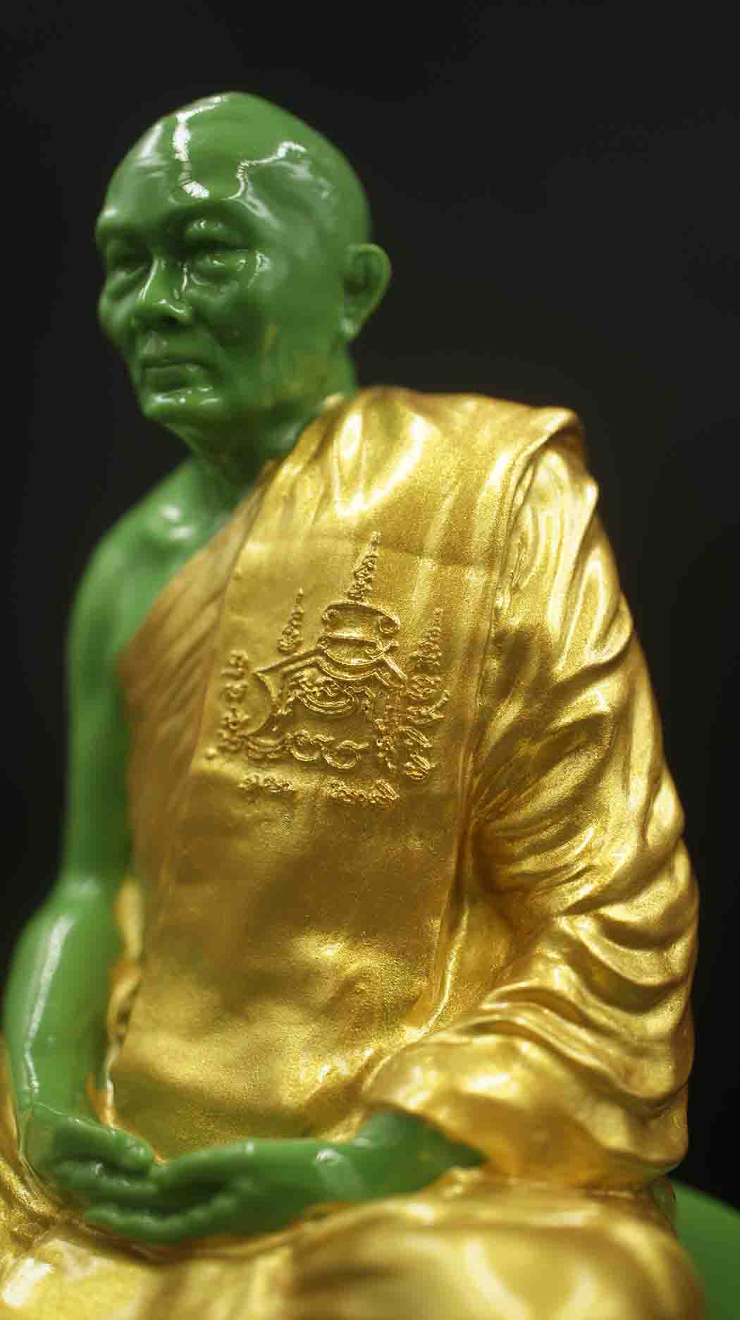 พระบูชา รูปหล่อ หลวงพ่อสาคร ( ย้อนยุค ) เนื้อเรซิ่นเขียว จีวรทอง ปี 2566 ขนาดหน้าตัก 3 นิ้ว สร้าง 1499 องค์ หมายเลข 3 หลัก **740** ( หลวงพี่ภุชงค์ ศฺิษย์หลวงพ่อสาคร ปลุกเสก วัดหนองกรับ ) ขนาดความสูง 4.8 นิ้ว กว้างจากฐาน 4 นิ้ว ใต้ฐาน ฝังหลอดมวลสาร แผ่นโค๊ตเงิน ตอกศาลา* |