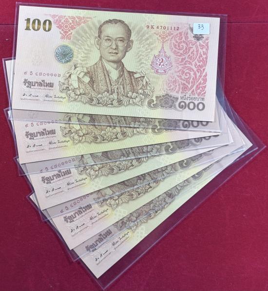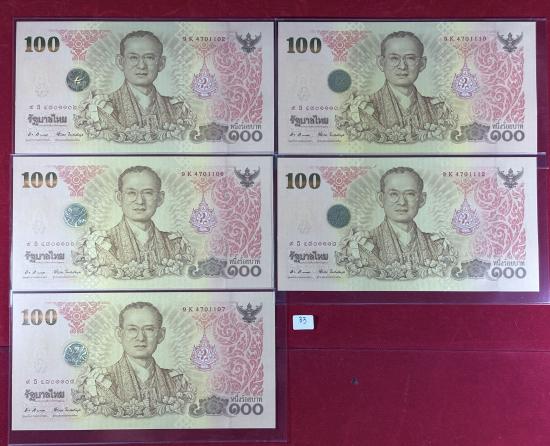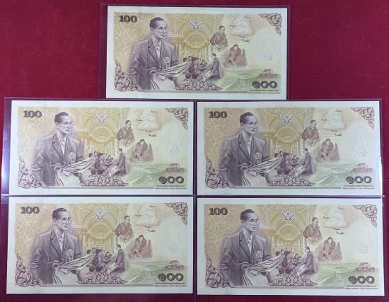 ธนบัตร 100 บาท รัชกาลที่9 ที่ระลึก84พรรษารัชกาลที่9 จำนวน 5 ใบ สภาพใหม่สวยตามรูป