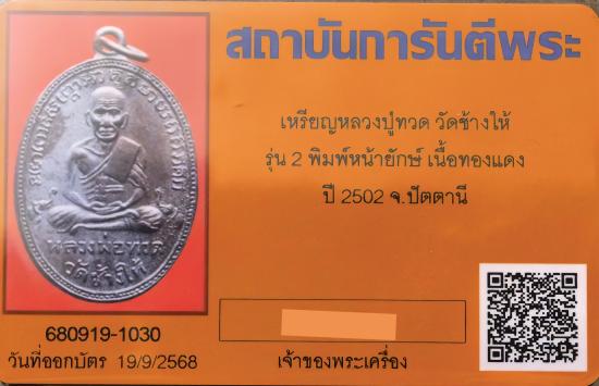 เหรียญหลวงปู่ทวด วัดช้างให้ จ. ปัตตานี รุ่น 2 บล็อคไข่ปลาเล็ก หน้าแก่ (หน้ายักษ์) ปี 2502 เนื้อทองแดงรมดำ. องค์นี้สภาพสวยคมชัดครับ.