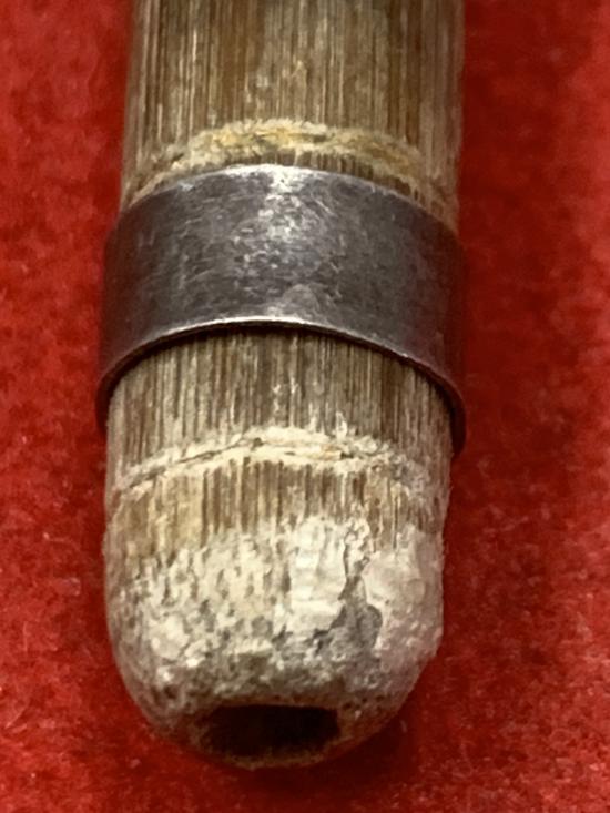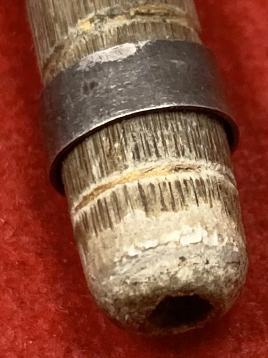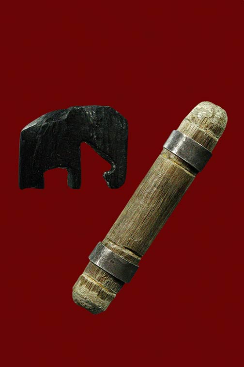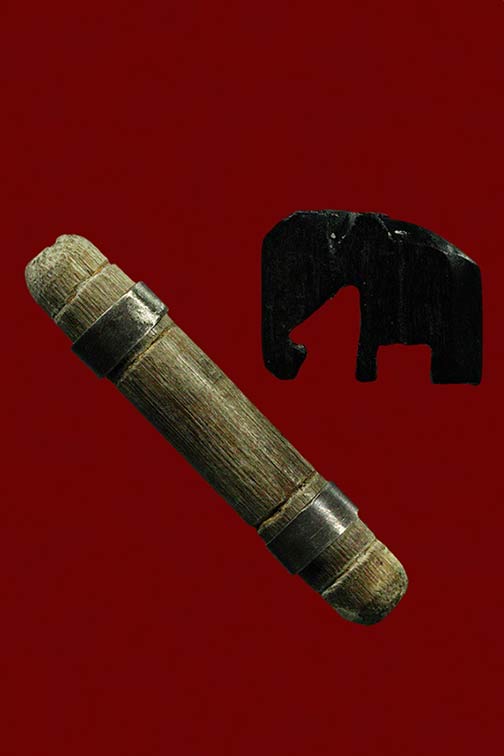 ไม้งิ้วดำแกะสมเด็จ ช้างไม้งิ้วดำแกะ กับไม้พร้อมปลอกเงิน ในรอ้งมีรักทองยาว 1.6 นิ้วเก่าไม่ทราบที่