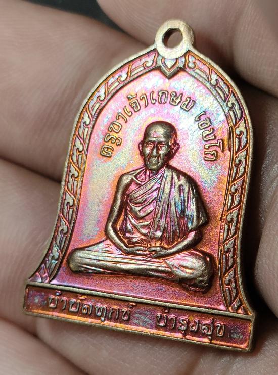 เหรียญระฆัง หลังสิงห์ รุ่นบำบัดทุกข์บำรุงสุข หลวงพ่อเกษม เขมโก จ.ลำปาง ปี 2537 เนื้อทองแดง |