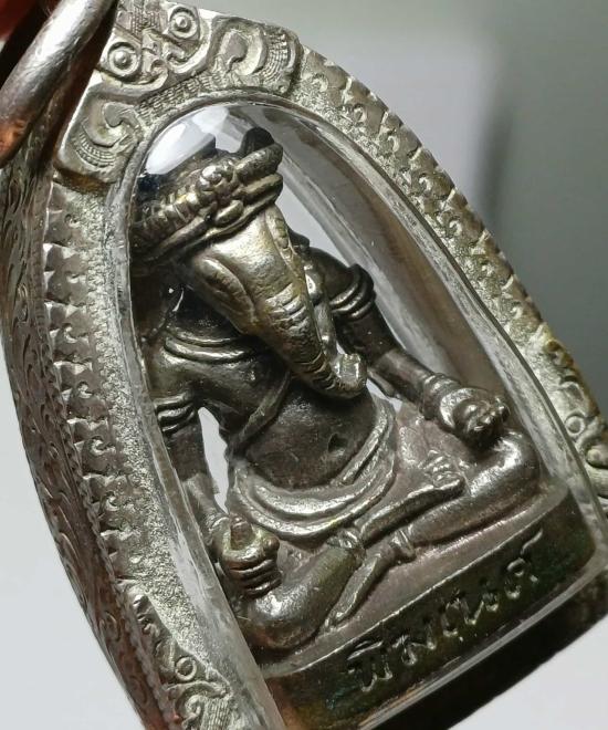 พระพิฆเนศ รุ่นสำเร็จประสงค์ ปี 2541 หลวงปู่หลวง กตปุญโญ วัดคีรีสุบรรพต จ.ลำปาง เนื้อนวะแก่เงิน