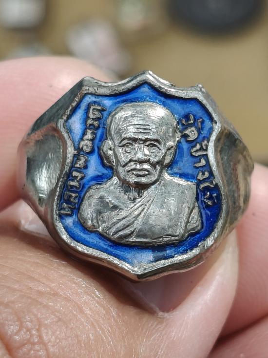 แหวนหลวงปู่ทวด วัดช้างให้ ปี2522 เนื้อทองแดงชุบนิเกิ้ลลงยาสีน้ำเงิน ไม่ผ่านการใช้ |
