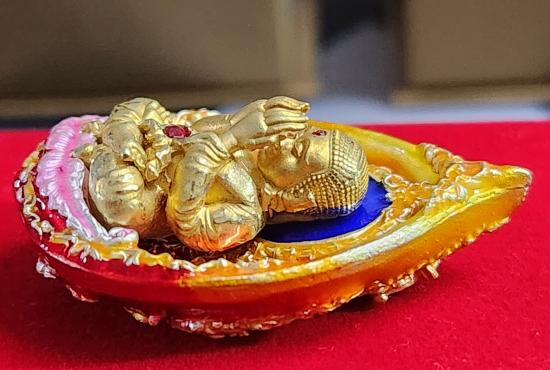 พระปิดตาพุทธศิลป์ รุ่นเจริญพร หลวงปู่โต๊ะ อินทสุวัณโณ วัดถ้ำสิงโตทอง เนื้อชุบเงิน ลงยาลายพระอาทิตย์อัสดงหน้า-หลัง องค์ทอง ฝังพลอยแดงหน้าผาก,สะดือ สร้างเพียง 29องค์(รันเลขรวม) |