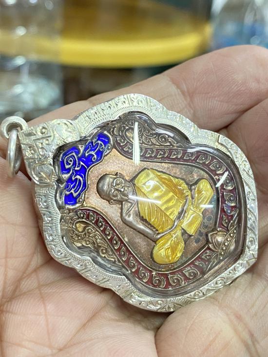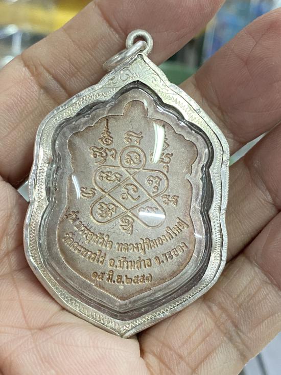 เหรียญเสมา หลวงปู่ทิม วัดละหารไร่ รุ่นบรรจุหัวใจ เนื้อเงินลงยา ปี2557 เลี่ยมเงิน