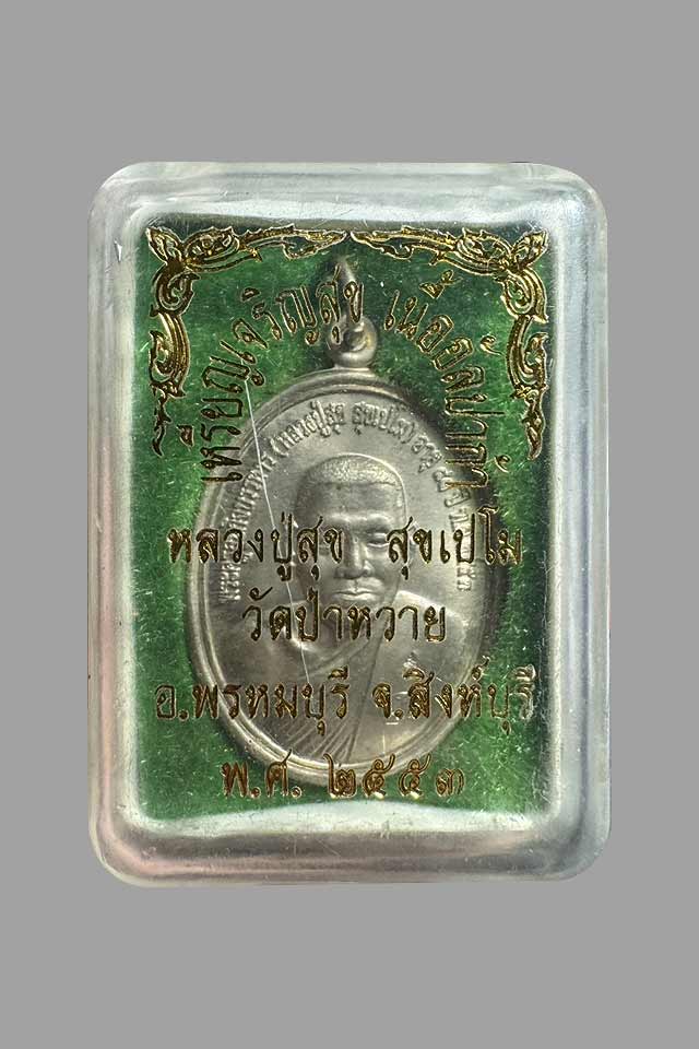 เหรียญรุ่นเจริญสุข ปี 53 หลวงปู่สุข วัดป่าหวาย จ.สิงห์บุรี เนื้ออัลปาก้า |